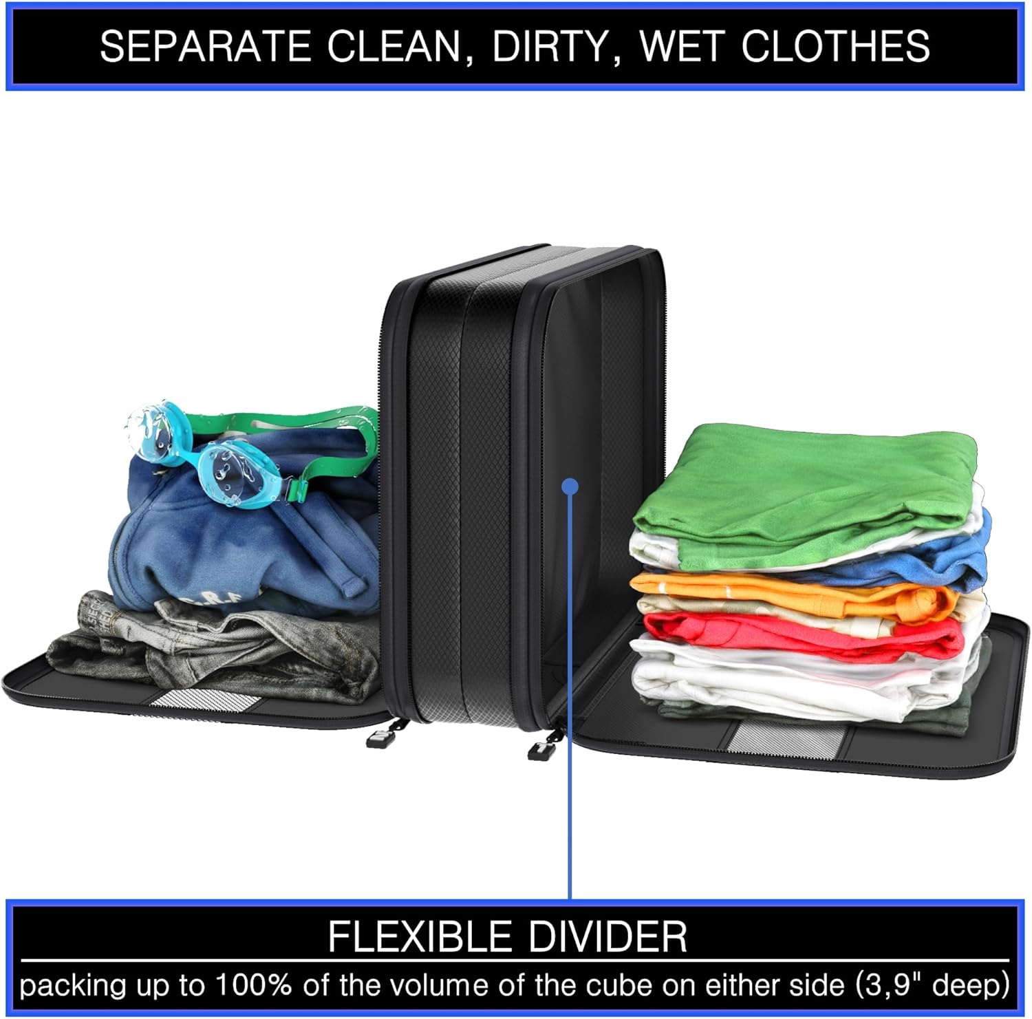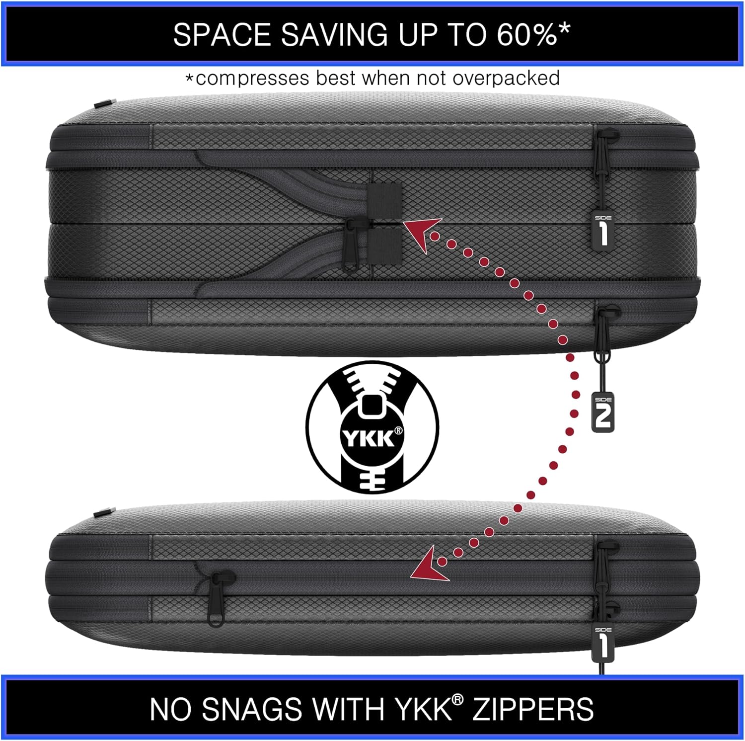 Premium Ultralight Compression Packing Cubes for Travel Luggage Organizer Set (Double Sided Clean Dirty – Black – 4 Set)