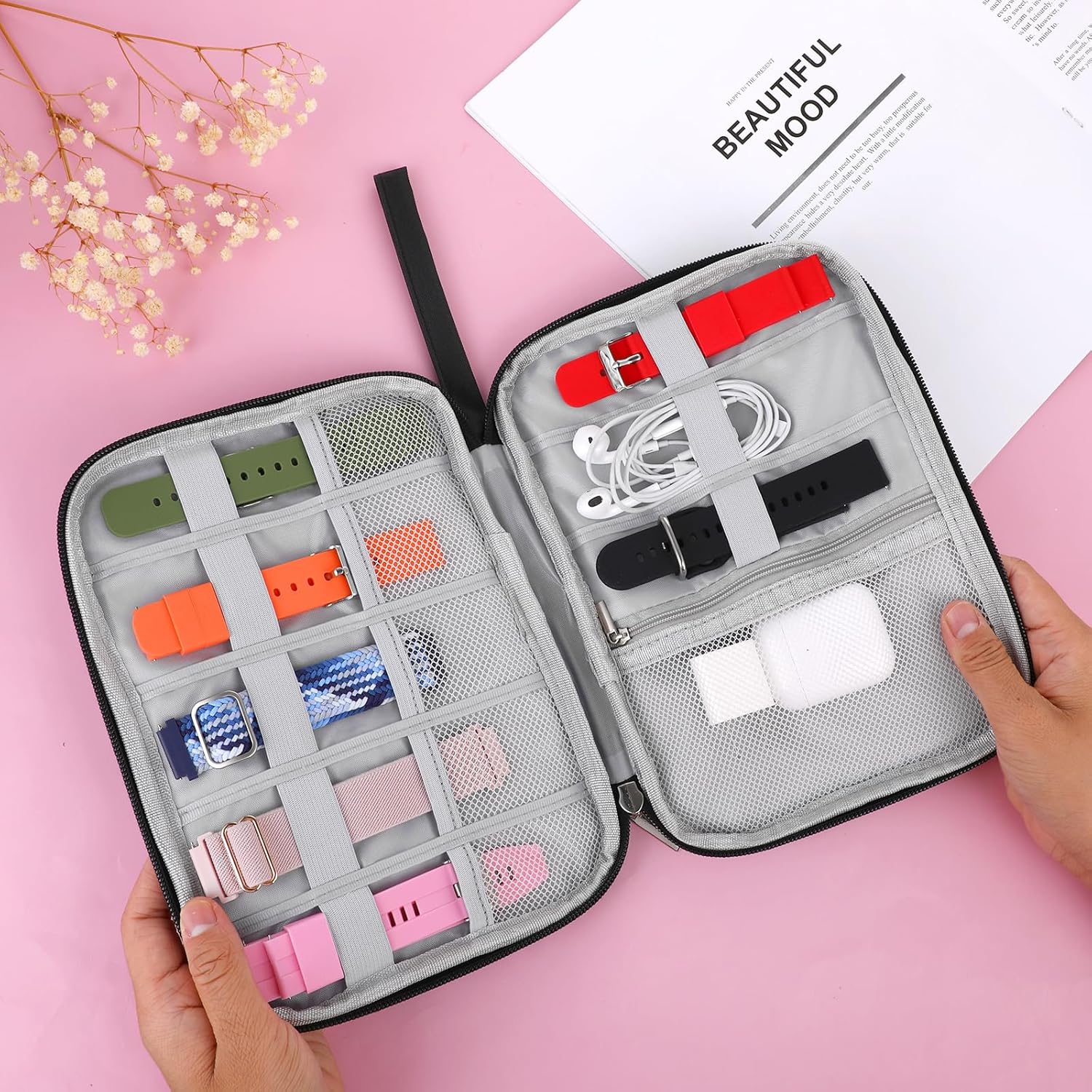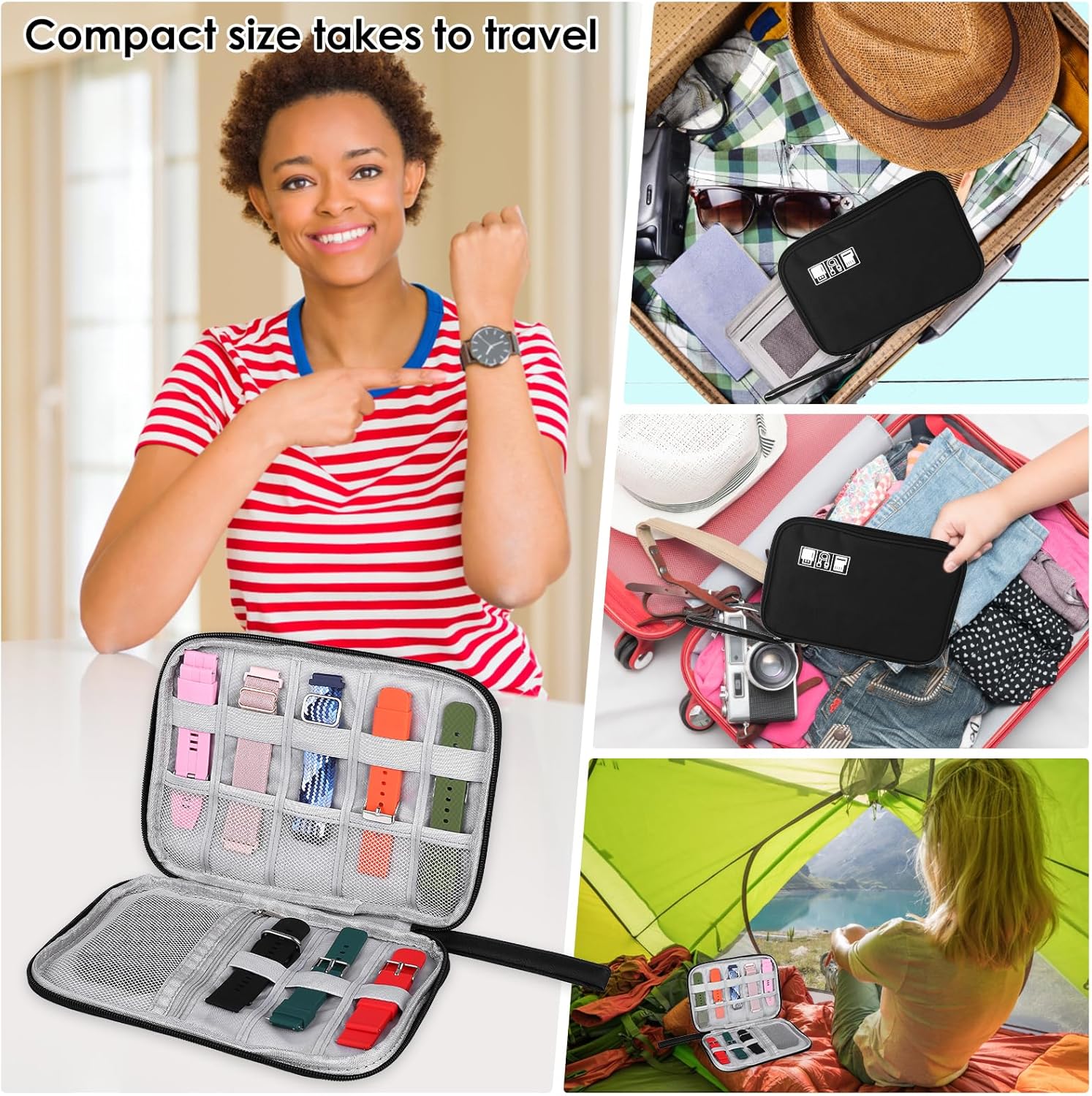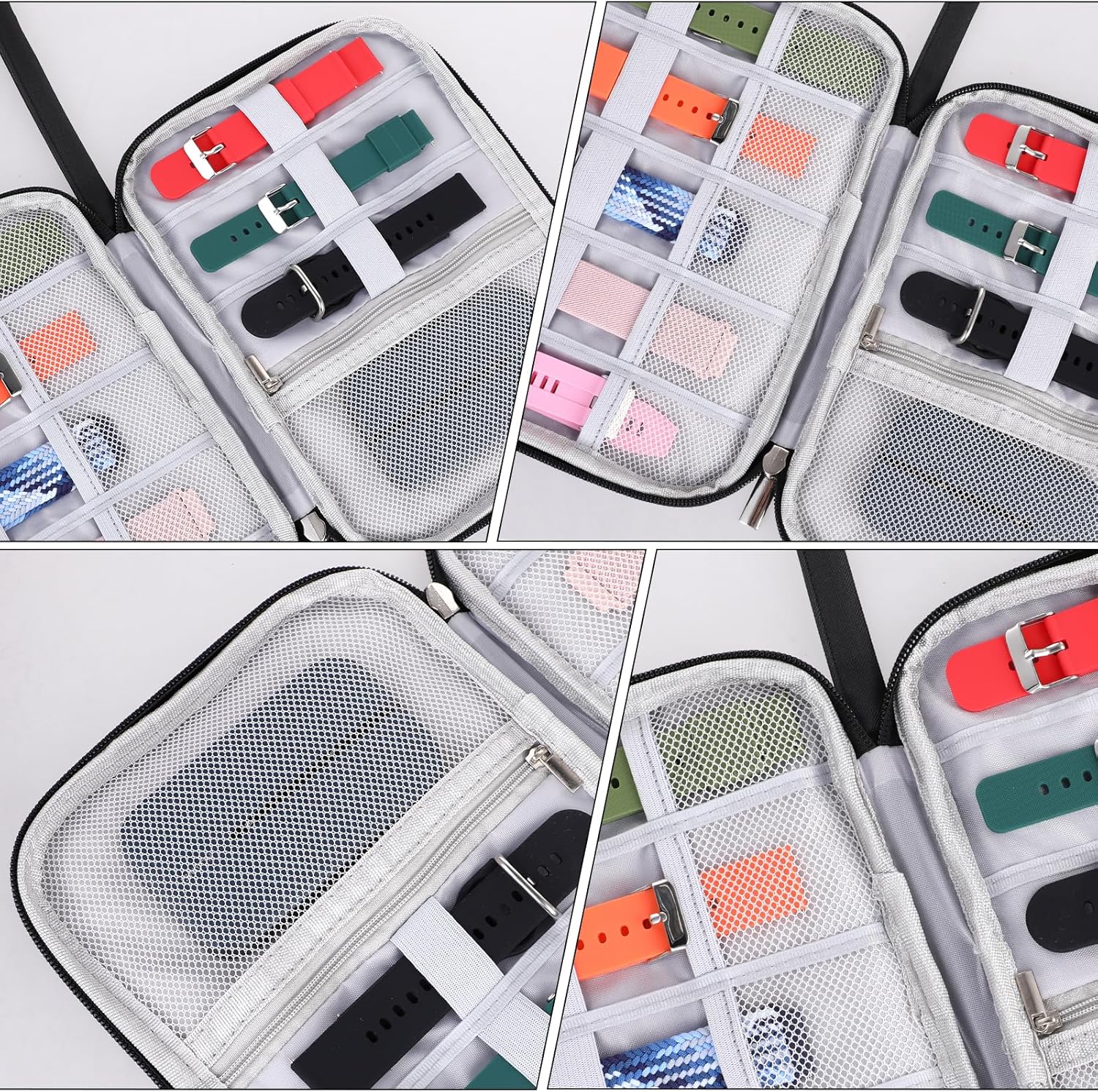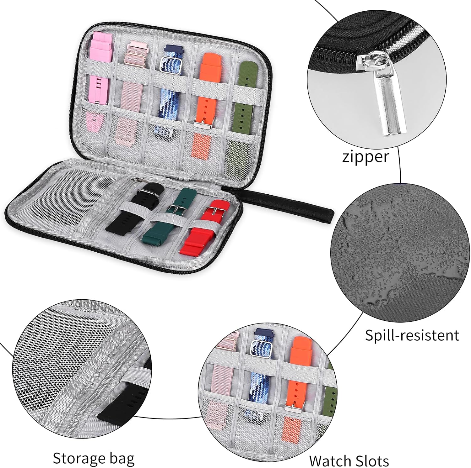 TIESOME Watch Band Storage Case, Travel Organiser Bag for Watch Bands Waterproof Watch Band Holder Smart Watch Band Organizer Watch Straps Carrying Case Compatible with All Watch Bands(Black)